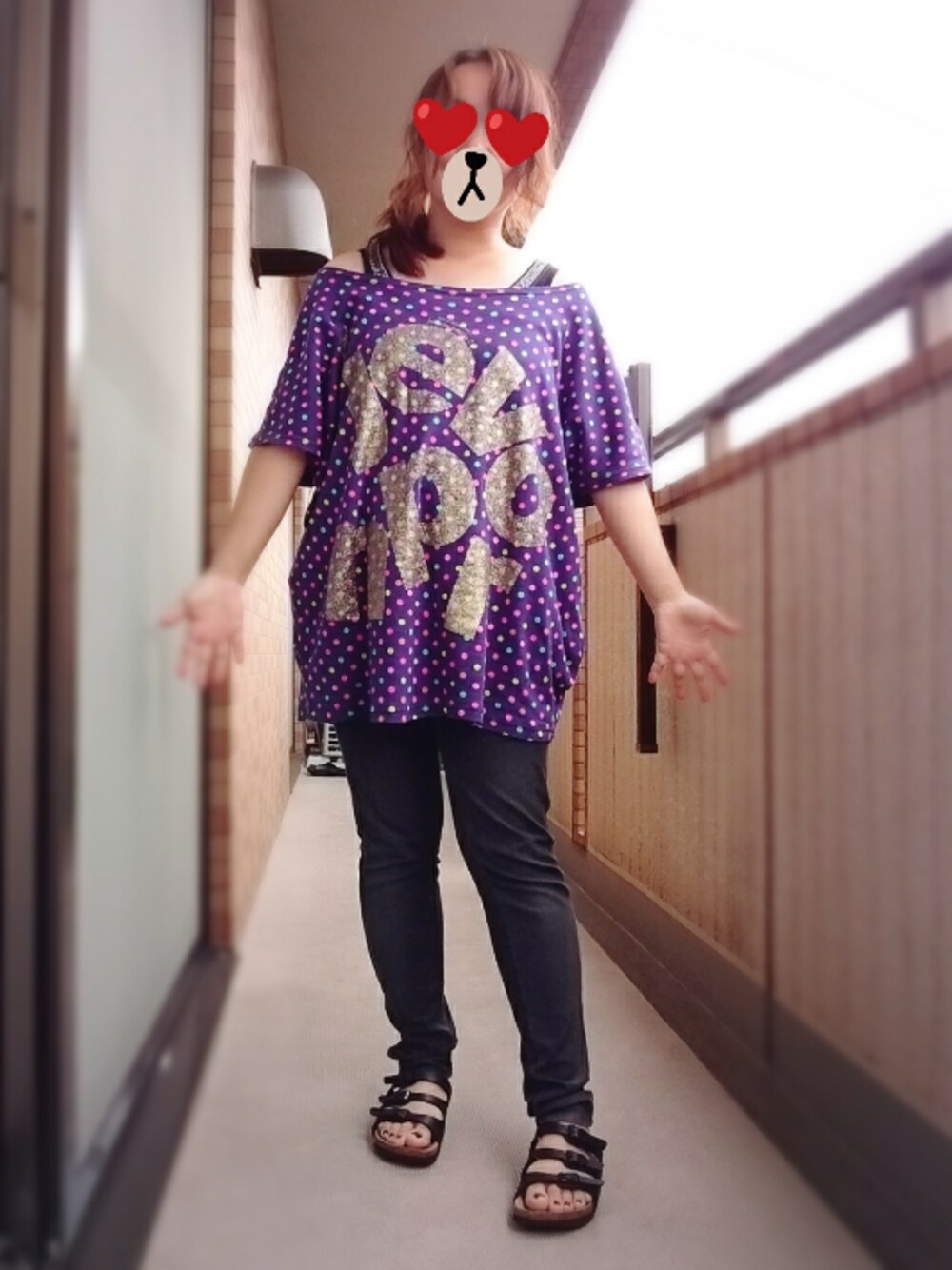 雨だし近所のスーパーしか行ってませんコーデ よくわからないポーズになってしまった… いつも撮るとき両手だらーんだから なんかたまには手をどうにかしよう!と 悩んでる間にこうなったらしい(笑 ジュヴTシャツは古着屋で480円(^ρ^)