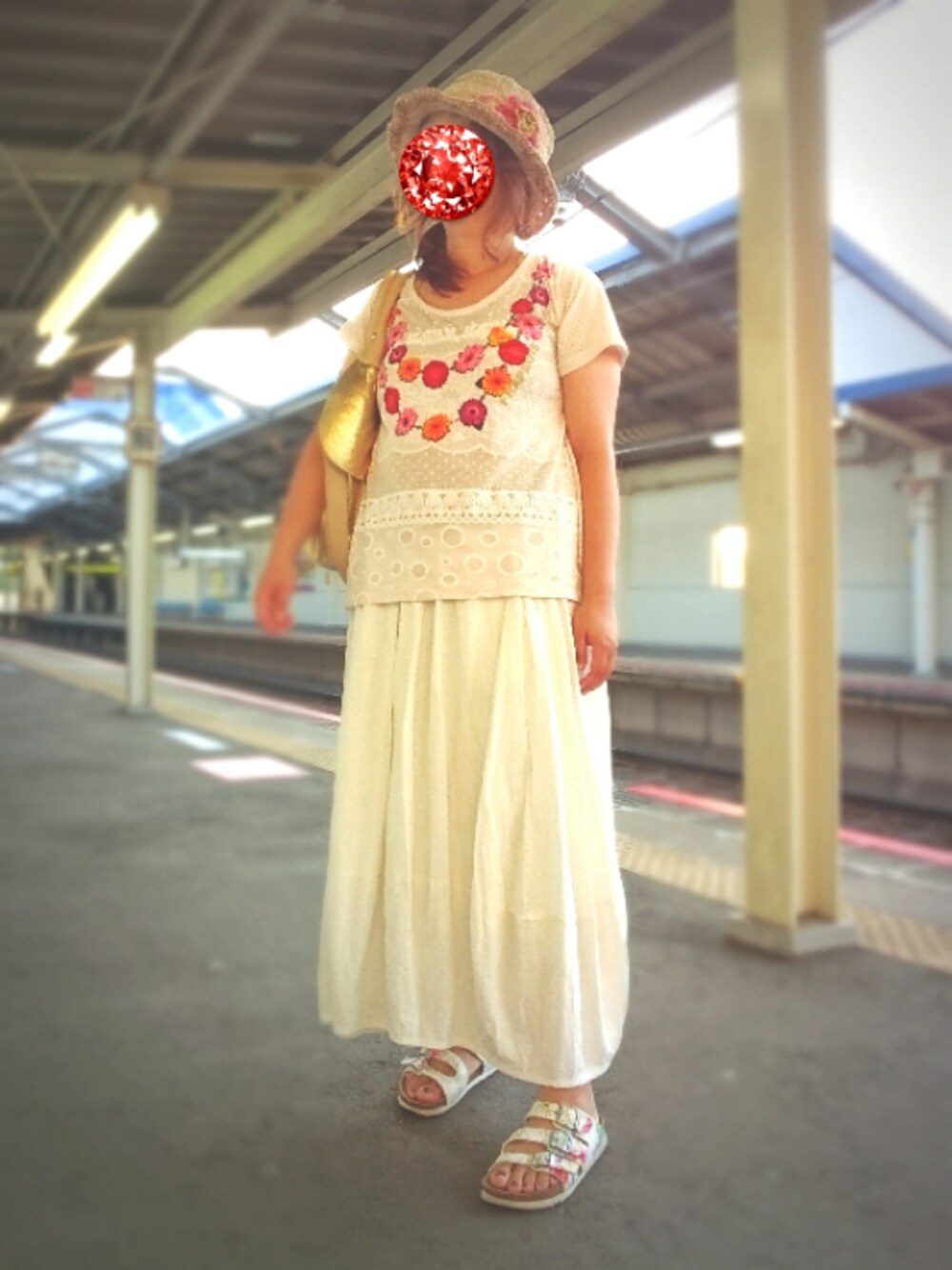 去年までの自分なら まずやらなかっただろうなぁコーデ(何 でも8月のうちに春夏カラーを着ておこう キャンペーン実施中なので思い切ってやってみた! 白×ベージュ×花柄… こんな服装なのにトマトソースパスタ頼んでしまった… めっちゃ気を遣いながら食べました←