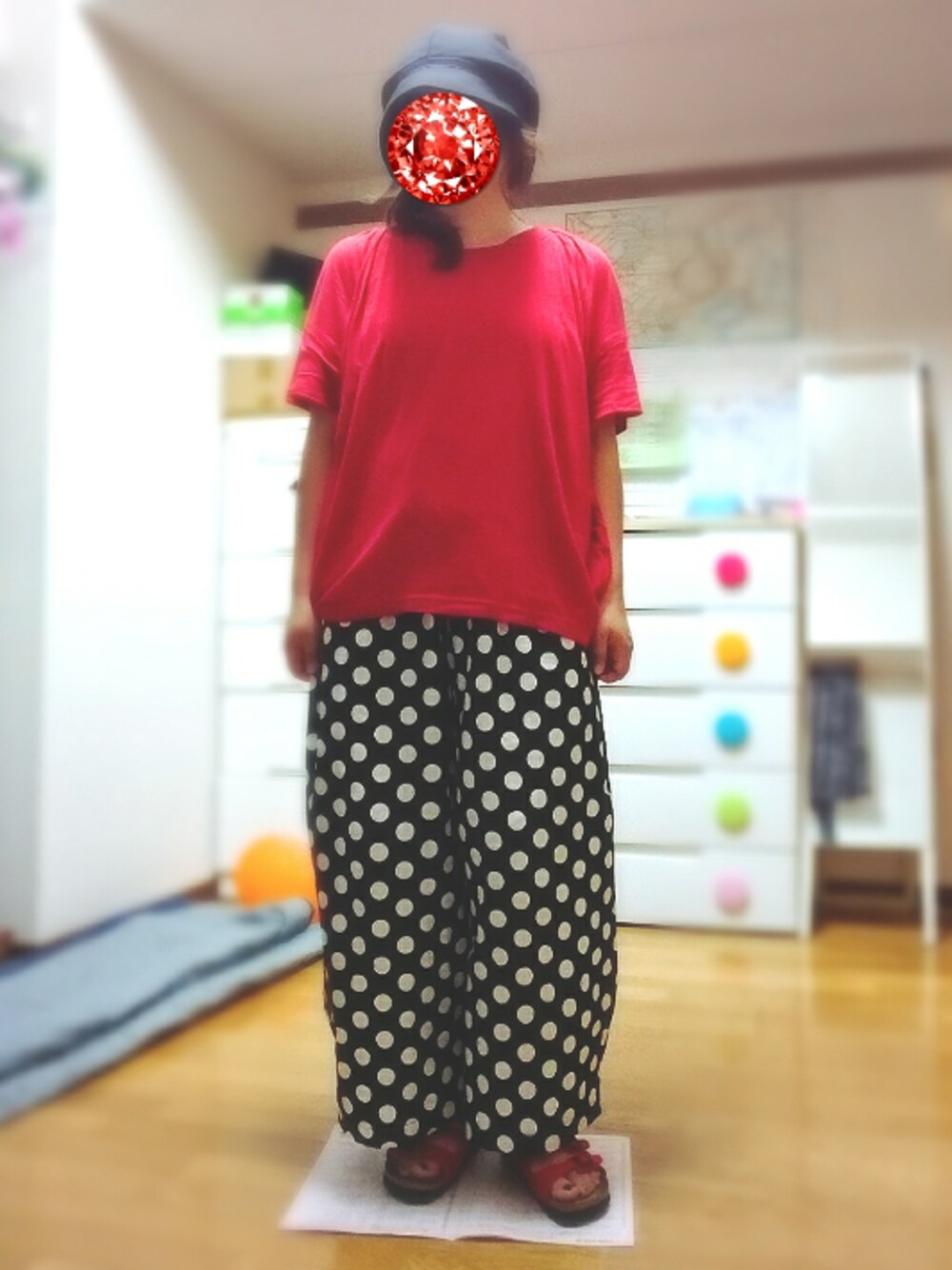今日も赤黒ドットコーデになってしまったなぁコーデ メルローのドットワイドパンツは 丈が長かったので自分で詰めた…だけのはずが 間違えて切らなくてもいい場所を切ってしまって うわーーーどうしようと悩んだ結果 切った場所を利用して裾を超若干狭くして ほーーんのりテーパードなシルエットにしたところ なかなかいい感じになりました\(^o^)/自己満足 洋裁のプロが見たらダメな出来だと思いますが 遠目ならごまかせるし普段着なのでいいんです|彡サッ ----- 北海道地震の被害がすごくて心配です… ほんのわずかですがヤフーから寄付しました。 私にはそんなことぐらいしかできなくて申し訳ないですが 少しでも早く復旧することを願っています┏○