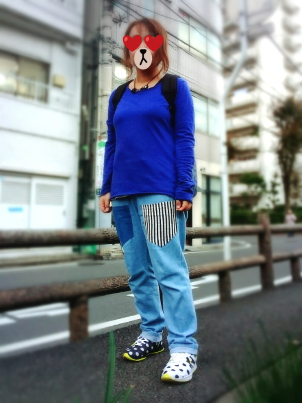 休日青系楽コーデ (その後寒くなってきて キャンスパジャージを羽織りました リュックはいつものX-girl stages… の色違い!!ほとんど見えないけど… 新品同様が某フリマで半額で売ってて さらに1000円引きクーポンもあったので ついポチってしまった(((^-^))) ものすごく使い勝手がよく 1年365日のうち300日はこのリュックです(笑 2ヶ月前にゲット済でしたが 青コーデな今日デビューさせてみた(^ρ^)
