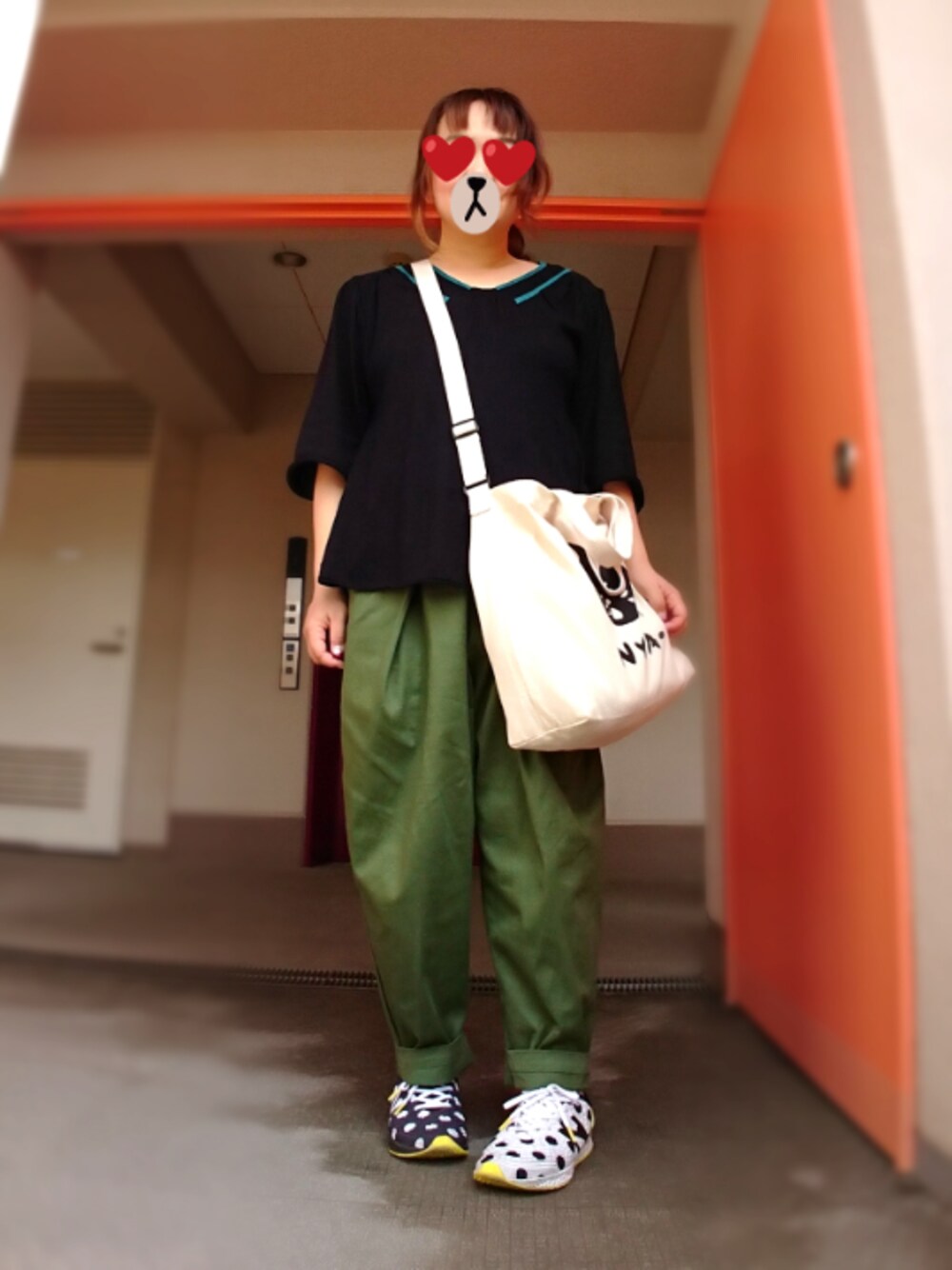 ぴよりあのトートバッグ「にゃー®の2WAYキャンバストートバッグ」を使ったコーディネート