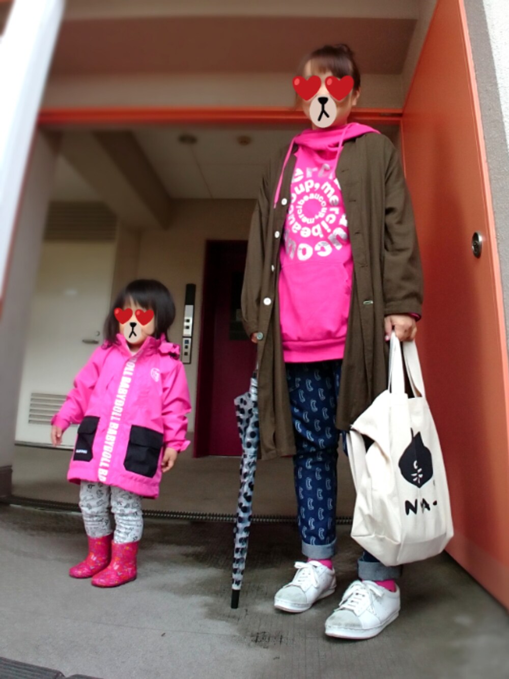 ピンクリンクコーデ(超偶然) 今日のタグが白スニーカーだったので 白スニーカーを(^ρ^) そしてメルシーのハトデニムを がんばって伸ばしています(笑) 10連休とは関係ない我が家です(;´∀`) 小雨で少し寒くてなんとも微妙な日だったので 早速今日から娘の音楽教室バッグを 作り始めました(笑