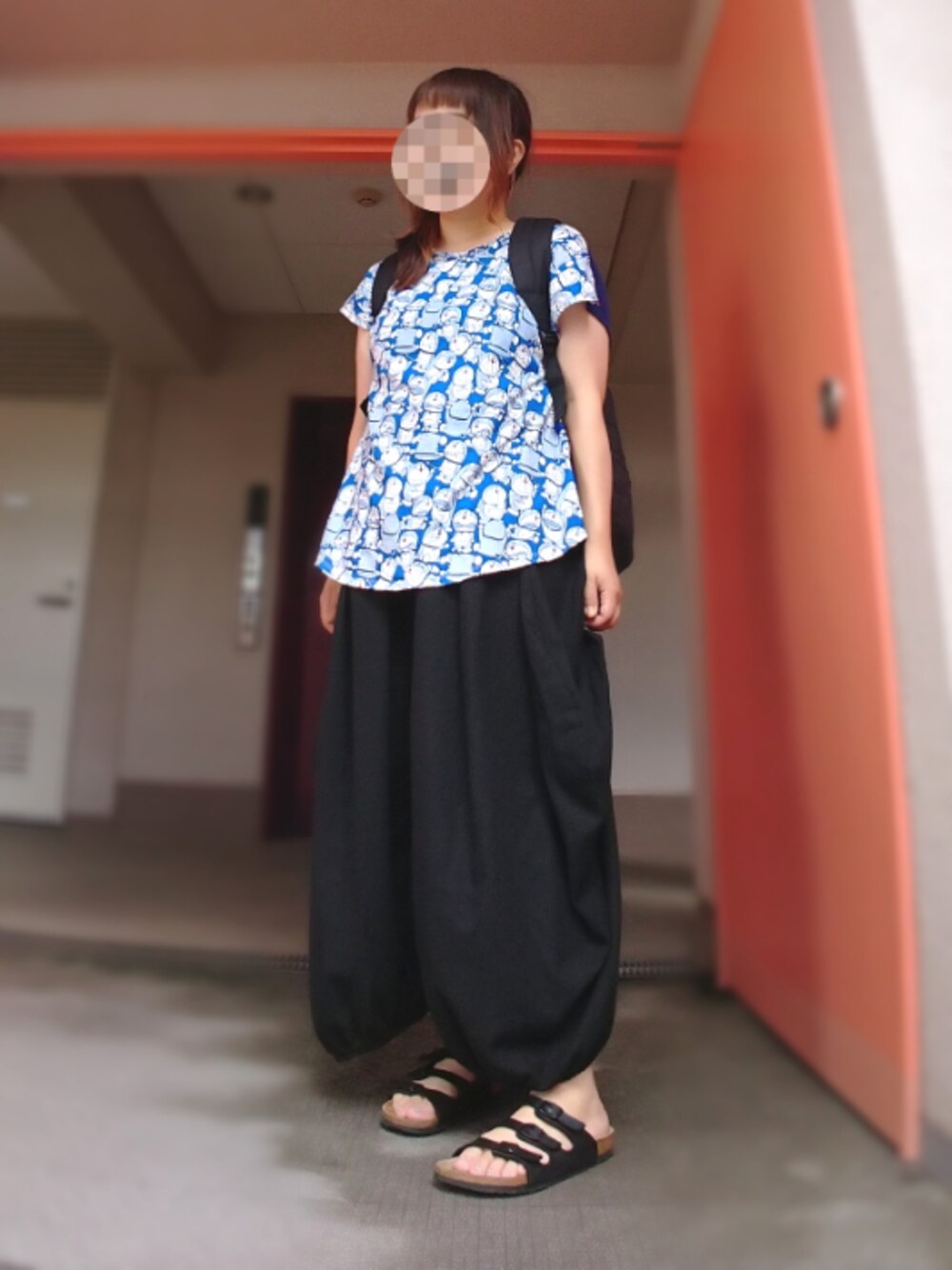 朝時間が無くて助けてドラえも~ん!!コーデ(何 今日は娘の音楽教室の日でしたが 他のお母さんは小綺麗なコーデの方が多い中 楽ちんドラえもんですみません|彡サッ