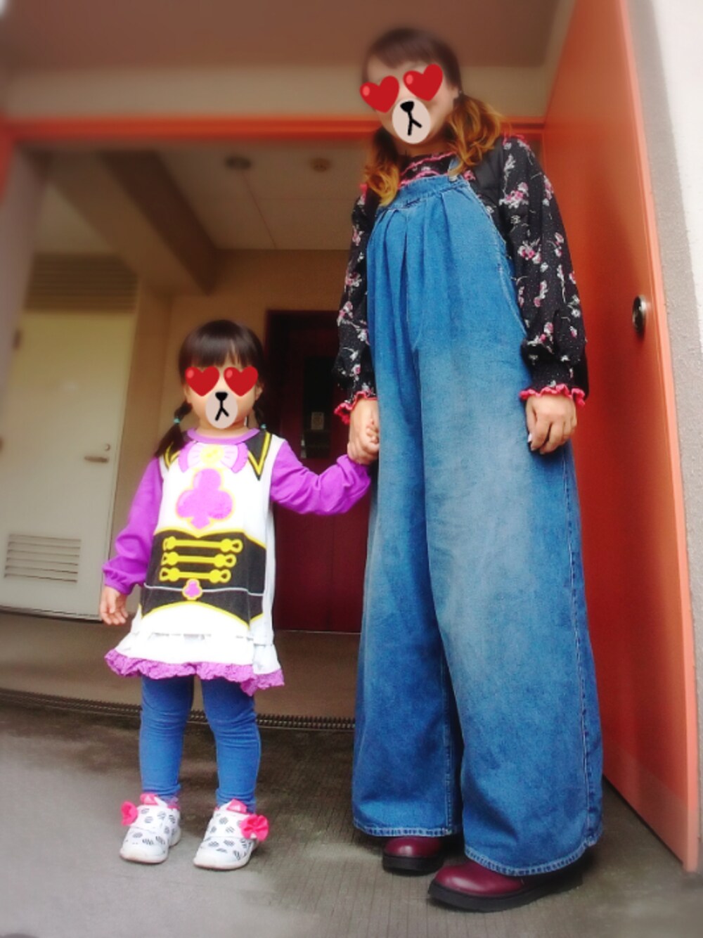 デニムリンクコーデ(超偶然 娘のチュニックは ファントミクローバーです(^ρ^)しまむらで購入 母娘ともヨツバちゃん(ファントミクローバー)推しです←