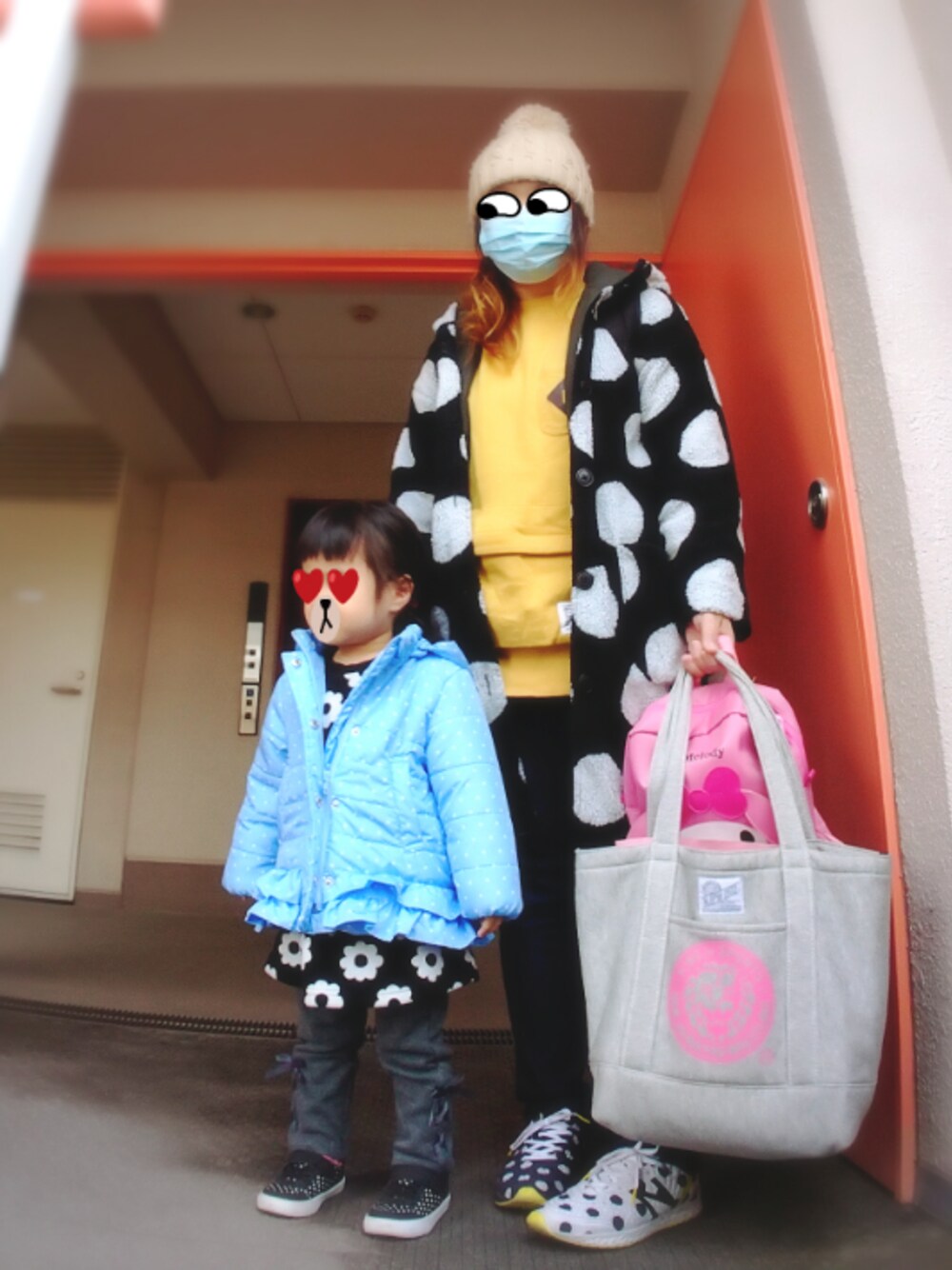 ひさしぶりの幼稚園未就園児クラスに参加コーデ 今日は在園児との交流がメインで お兄ちゃんお姉ちゃんたちに遊んでもらえて 楽しそうでありました(^ρ^) 幼稚園だから暖かく動きやすい感じで… 手に持ってるバッグは 母娘の上履きとかが入ってる 数年前の新日本プロレス×しまむらコラボバッグと 去年のしまむらのマイメロ子供服福袋のリュック… どちらもしまむら(笑 娘の花柄ワンピは一昨年セールで買ったウィルメリー フリース素材で暖かくて花柄がお気に入り(←私が)ですが 90サイズなので今年までだな… マザウェイズ2点はどちらも去年の福袋の中身(^ρ^)