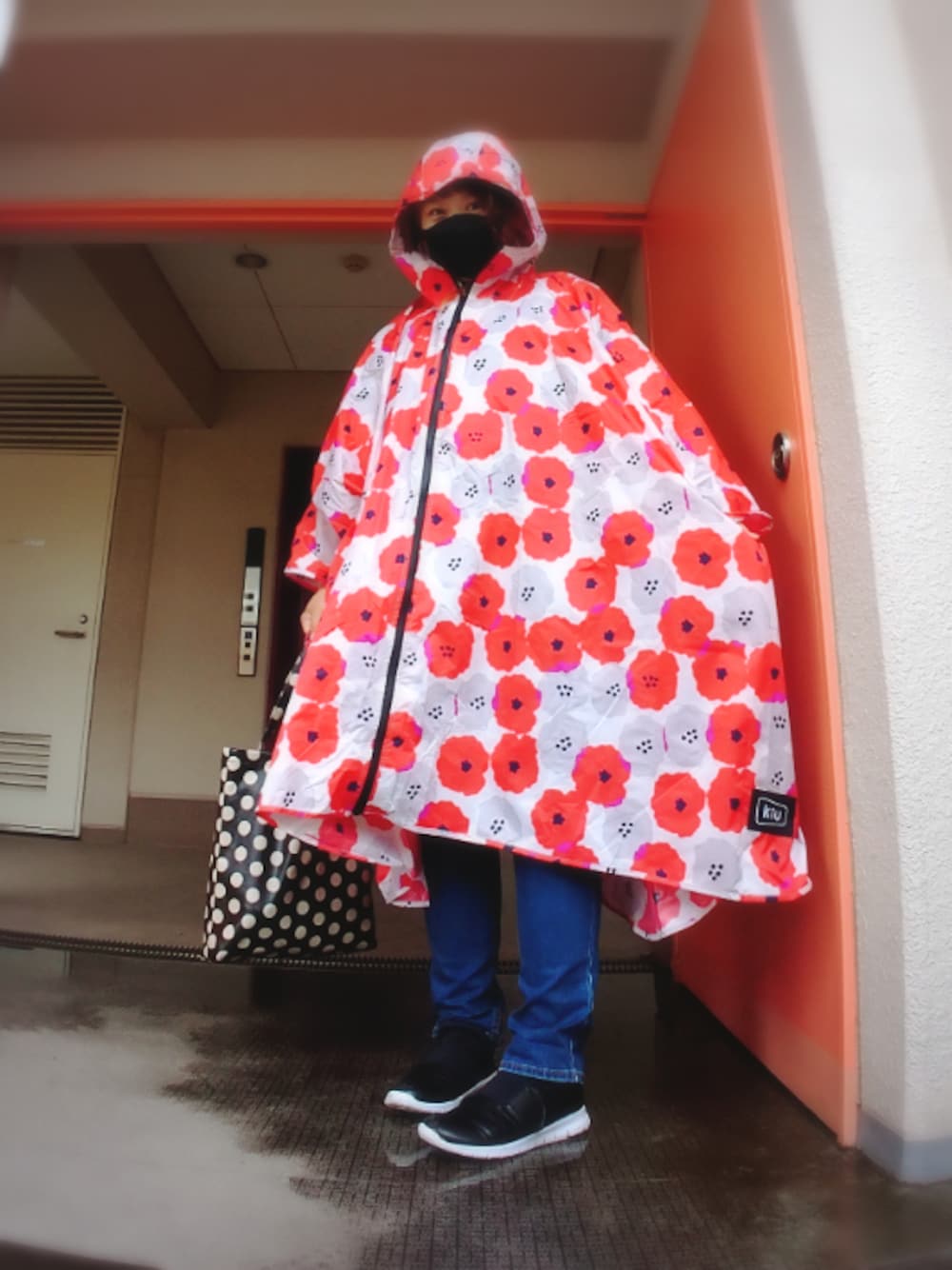 おしゃれがどうのこうの言ってられない 大雨の幼稚園送り迎えコーデ 今後は雨の日は、送りは自転車でも 迎えは徒歩のほうがいいかもな…|彡サッ レインポンチョは去年買いましたが 今日初めて着ました(^ν^) ほとんど濡れなくて助かったけど この季節は…暑いな_| ̄|○ そして想像してたより派手だったな… お迎え行った時に娘にすぐ見つけてもらえるが(笑