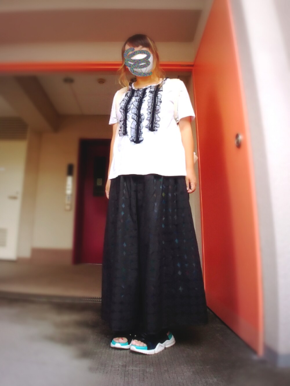 幼稚園送り迎え…の間に買い物に行ってきた 白黒コーデ 昨日のデニムと一緒に試着したTシャツ! ZARAには白Tシャツ×黒フリルが多く ・袖周りだけに黒フリルT ・裾周りだけに黒フリルT ・首周りだけに黒フリルT ・前面だけに黒フリルT←これ 等ありどれもかわいくて悩みましたが 袖の長さ首の空き身幅丈等全部Tシャツの形も違い 自分に一番合いそうなのは この前面フリルバージョンでした(^ρ^) 今日から9月… 偶然にも今日はいつもよりは暑くなかったし しばらくは秋色の夏コーデを目指したいと思います…たぶん