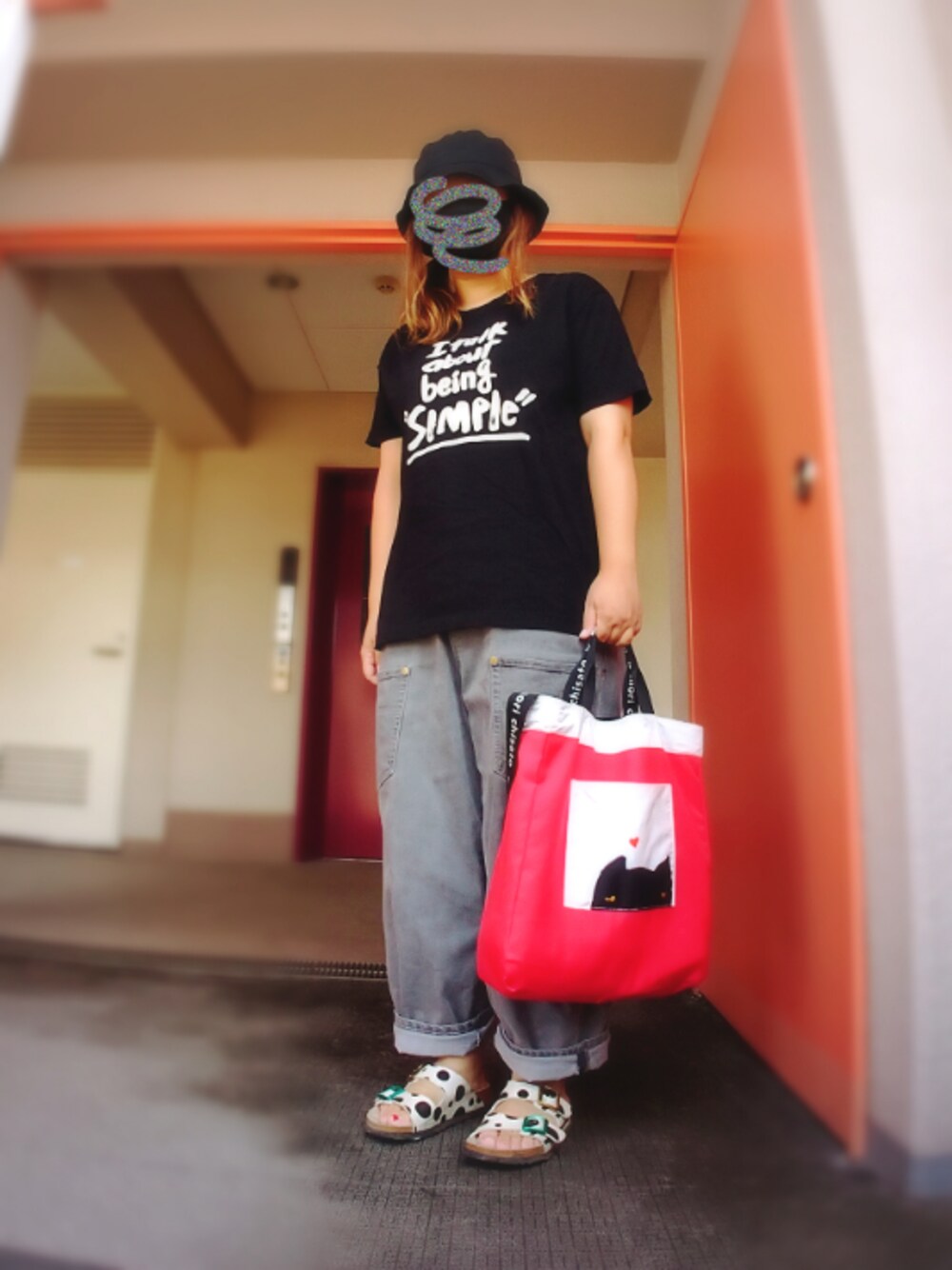 だいたいモノトーンな 今日の幼稚園送り迎えコーデ 服がモノトーンなので ニコアンドツモリバッグはあえて赤色側に(^ν^) 以上|彡サッ