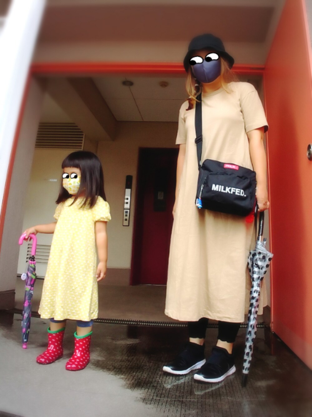 予約していたサ○ゼのテイクアウトを取りに 雨の中少しだけ外出のワンピおやこーデ GUのAラインワンピのベージュ 6月には買ってありましたが 汗かくとそこそこ目立つ色なので 真夏は着る気になれず(;´∀`) 今年のAラインワンピは丈が短めだから 下にレギンス履けば自転車乗れそうかな…