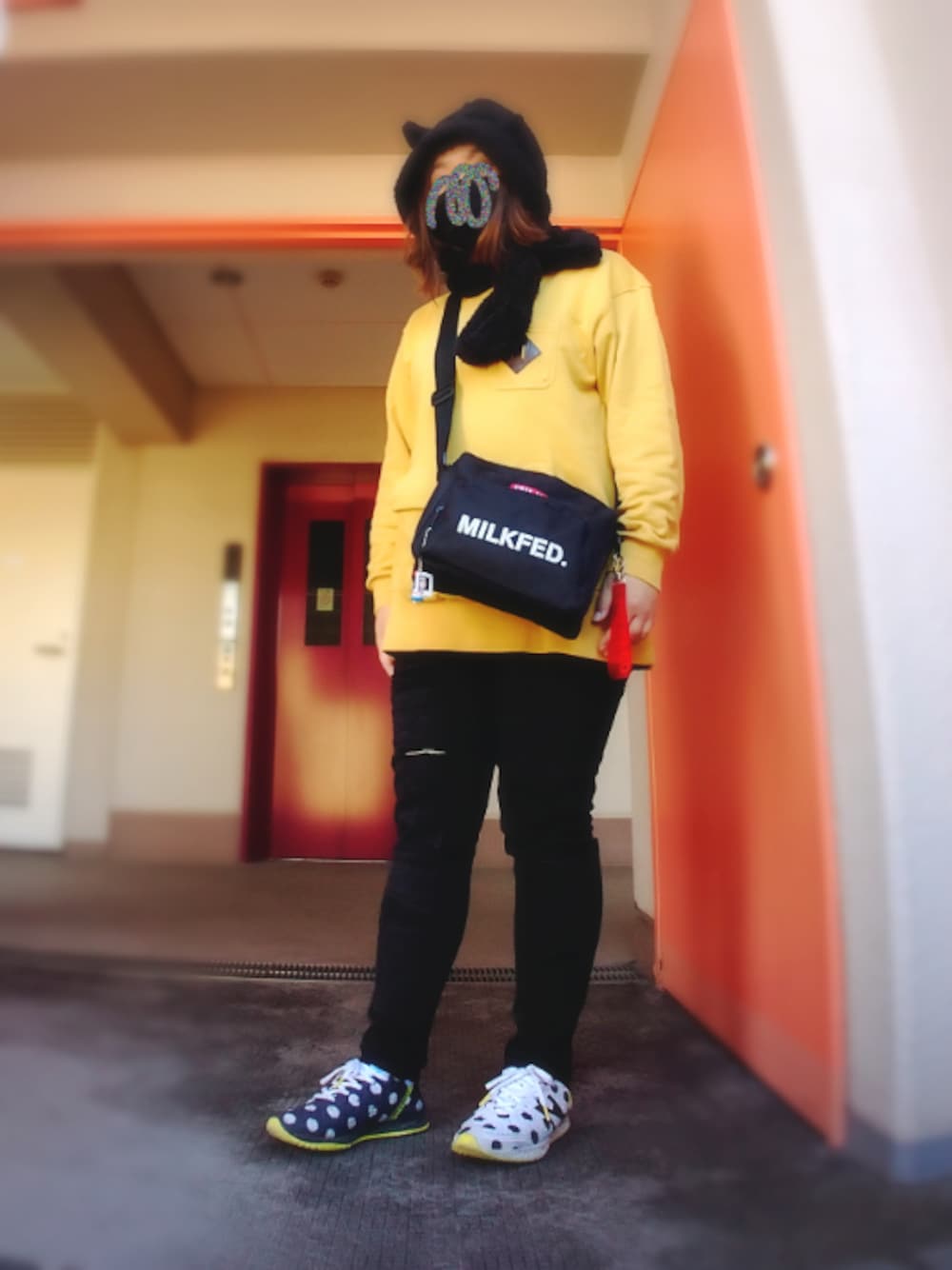 幼稚園の送り迎えの合間に 宅急便を送りに行っただけコーデ 幼稚園送りの時はアウター着てたけど 昼間は暖かったのでアウター無し 代わりに何か首に巻くか…と ひさびさに取り出したにゃーマフラー すぐ近所に行くだけだし…と思い にゃー帽部分もかぶってみました(笑 ク□ネコヤ○ト行くに相応しいコーデですね← 以上|彡サッ