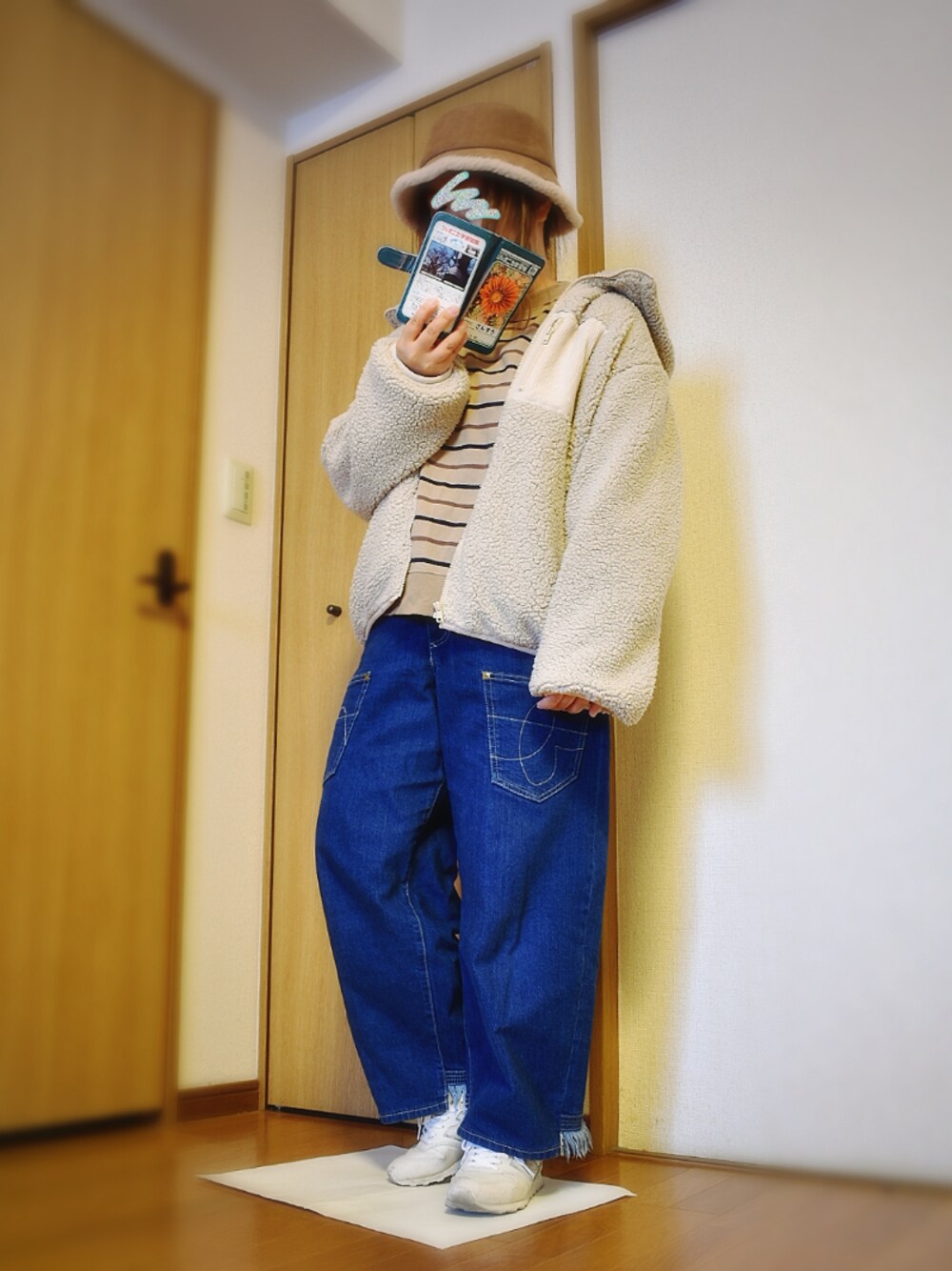 ぴよりあのハット「WEGO/リバーシブルファーボアバケットハット」を使ったコーディネート