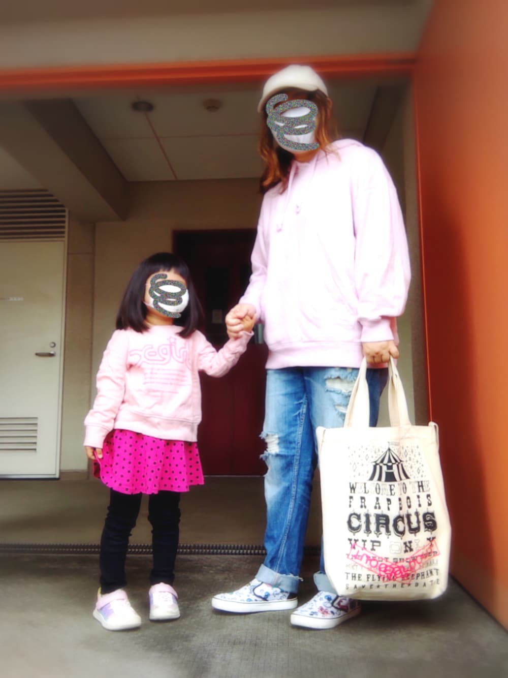 だらだら土曜日ピンクおやこーデ(偶然 何も考えず着たらふたりともピンクでした(笑) 娘スウエットはX-girl Stages(の福袋の中身) ベビドのスカートパンツは(私が)気に入って 990円だった日に色ち買い(^ρ^) 以上|彡サッ