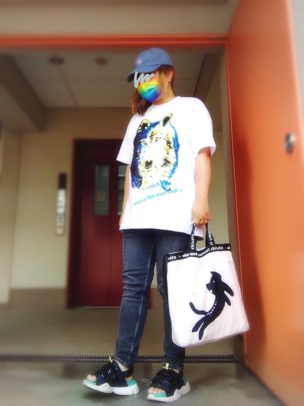 今日の幼稚園送り迎えコーデ 日曜にアウトレットで買った 白いTシャツ2枚のうちの1つ! このオオカミTシャツ、欲しかったのに 大きいサイズは悩んでるうちに完売してしまい… まさかアウトレットで出会えると思わなかった… うしろまえデニムの黒も欲しくて悩んだけど 予算の都合で買わなかったので 似たようなグレーデニムを合わせてみました(^ν^) 以上|彡サッ