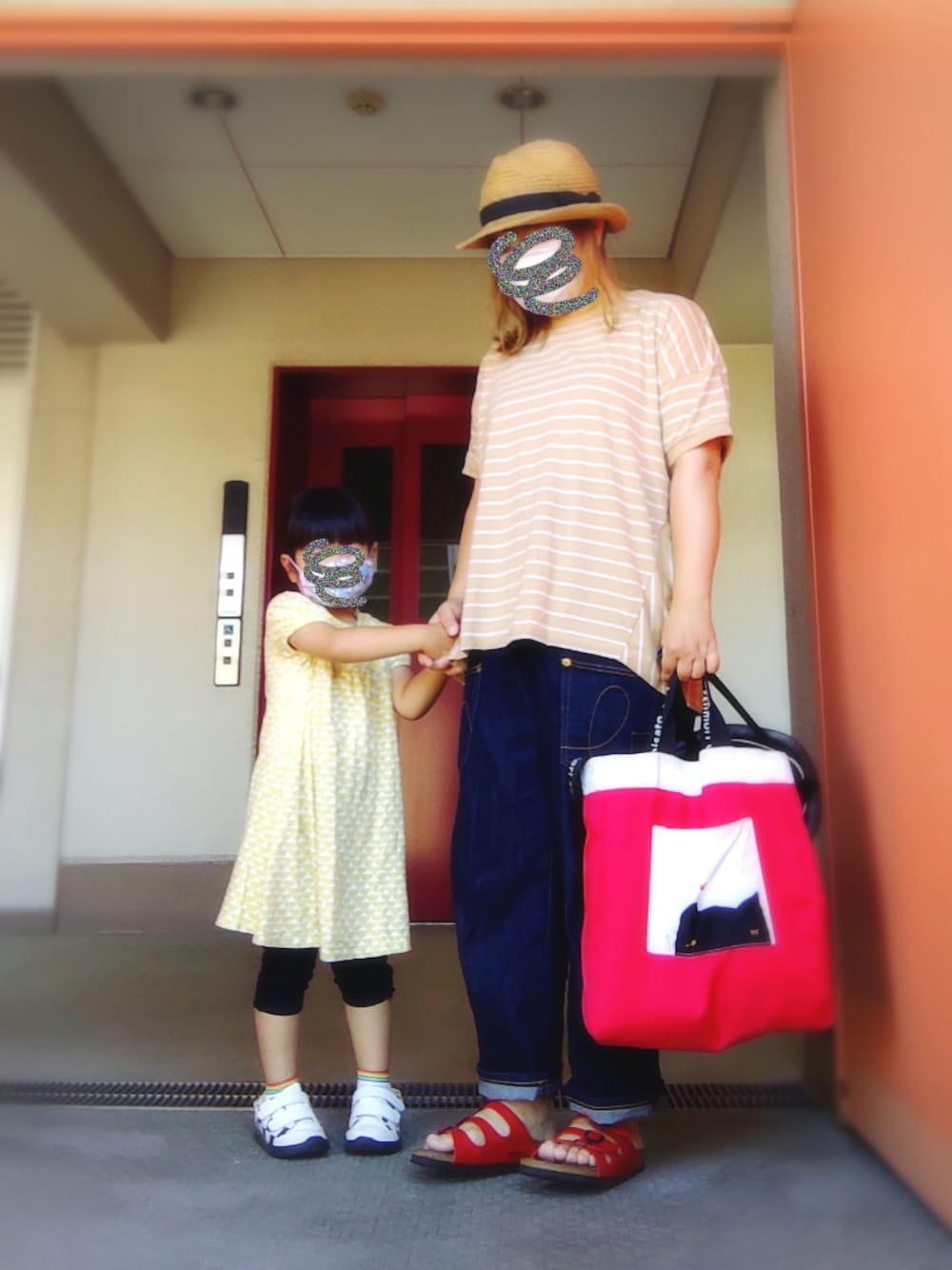 今日のタグがボーダーだったので着た 近所のスーパーに買い物行ったコーデ 娘のワンピ(100サイズで肩ボタンありのベビー仕様)は 今年は無理だと思ってたのに まだ余裕あってびっくり! チビなりにちゃんと背は伸びているのですが(笑) (私が)気に入ってるのでまだまだ着せます! サンダルはスニーカーに比べると やはり履き心地がいまいちなようで 最近は履いてくれません(;´∀`) 以上|彡サッ