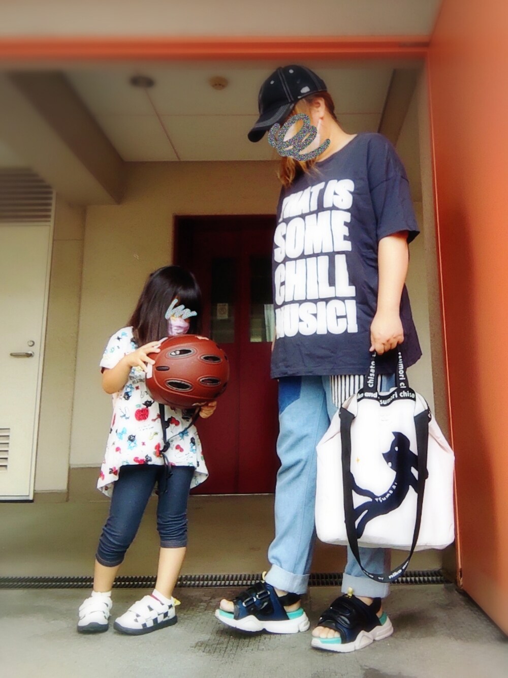 毎週火曜は最寄りスーパーに買い物の日…コーデ 娘さんが持ってるのは自転車のヘルメット(笑) トップスは西松屋(^ν^) 明日からまた30℃超えになるらしい…ヒー 以上|彡サッ