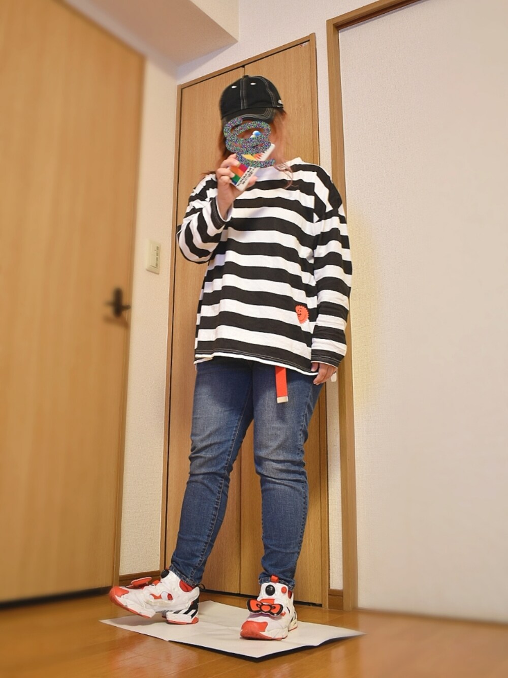 フラボアで約一年ぶりに買い物しました 今日の幼稚園送り迎えコーデ 今朝は憂鬱な旗当番だったので気合い入れるべく なにか新アイテムを身につけようと思い こちらのロンTを…ハイ柄ち買いです\(^o^)/ ずっとボーダーも欲しいと思っていたところ まさかの謎の80%OFF!!!1400円!!! 即購入(^ν^)ニッコリ で、いつもの場所でも撮ったものの 今日は寒くて上にカーデを着ていたため 普通のボーダーロンTにしか見えなかったので あえての部屋撮りで(^ρ^)