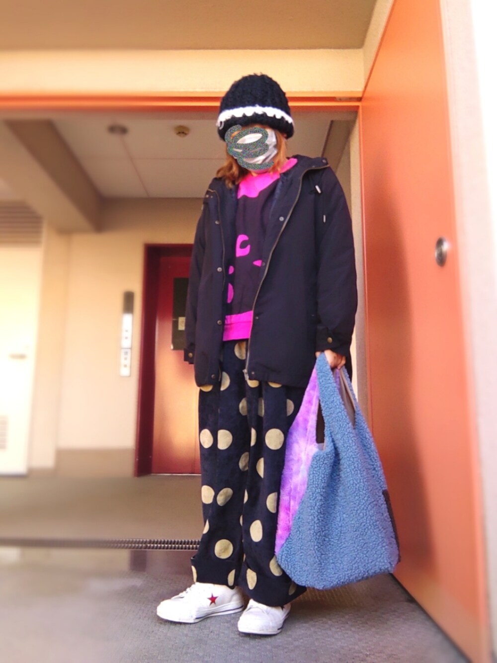 今日の幼稚園送り迎えコーデ 写真撮ってから客観的に見たら ちょっと幼稚園送り迎えには派手だったかも…|彡サッ パンツ、このドットと太デニムで悩んだんだよな… 次回は太デニム合わせにしよう… 日曜行ったアウトレットで このにゃーのスウェットの色違いが売ってて 買いそうになったけど…思いとどまりました アウトレットからもだいぶメルネネにゃーが減ってきて さびしい限り… 以上|彡サッ