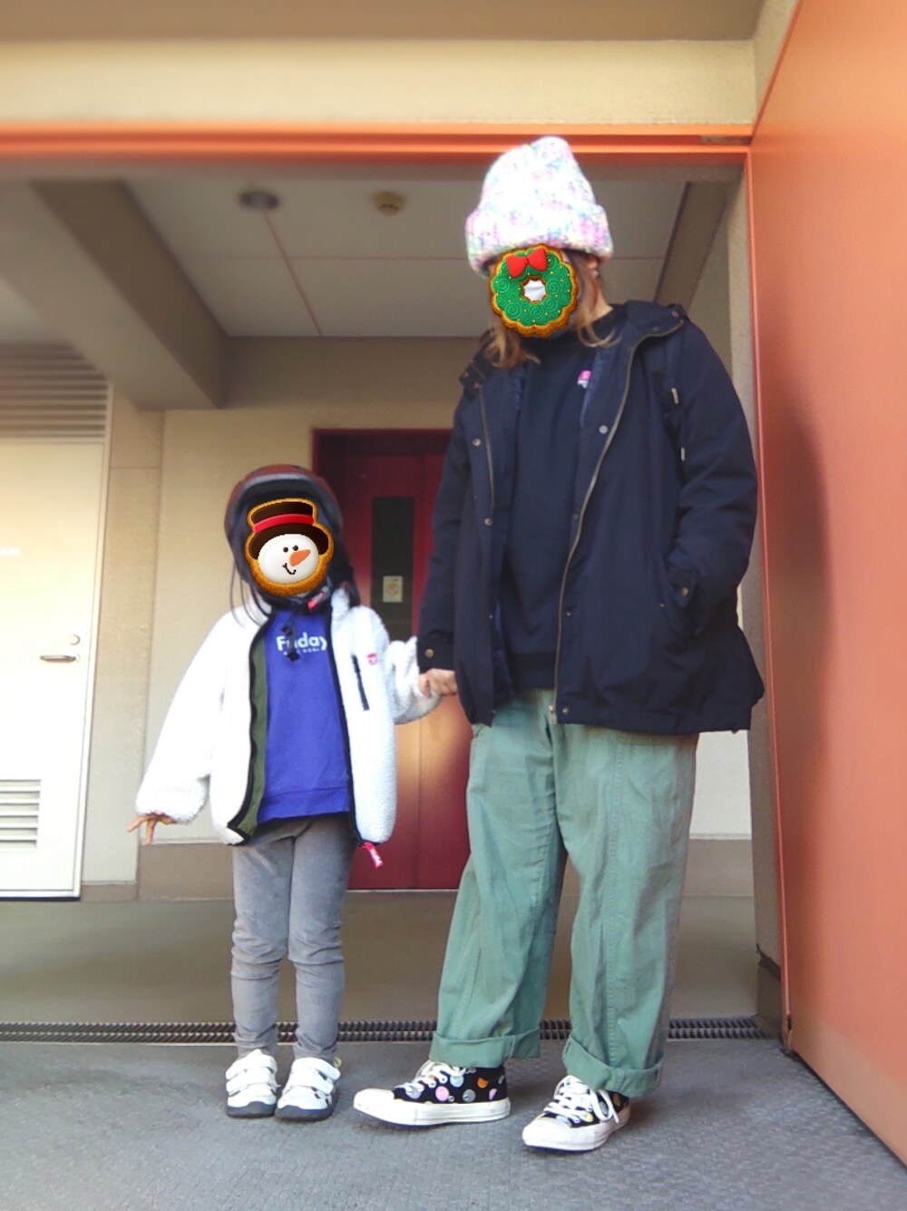 冬休み初日・クリスマスイブですが だいぶいつもどおりすぎるゆる楽おやコーデ 一応グリーンパンツでクリスマスツリーを意識 持ってることを忘れてたほんのりカラフルニット帽で クリスマスイルミネーションを意識 (言わないと全く伝わらない← 娘さんは金曜日しか着れないトレーナー(笑) 去年セールでたまたまFridayだけ残っていて 娘は紫好きだしと思って買いましたが 本人もFriday=金曜は理解してるので 喜んで金曜日に着ています(^ρ^) 以上|彡サッ