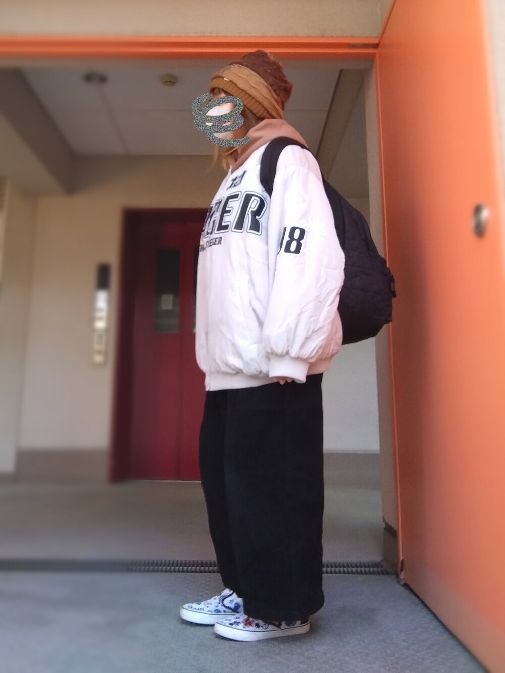 ぴよりあのニットキャップ/ビーニー「パッチワークターバンキャップ」を使ったコーディネート