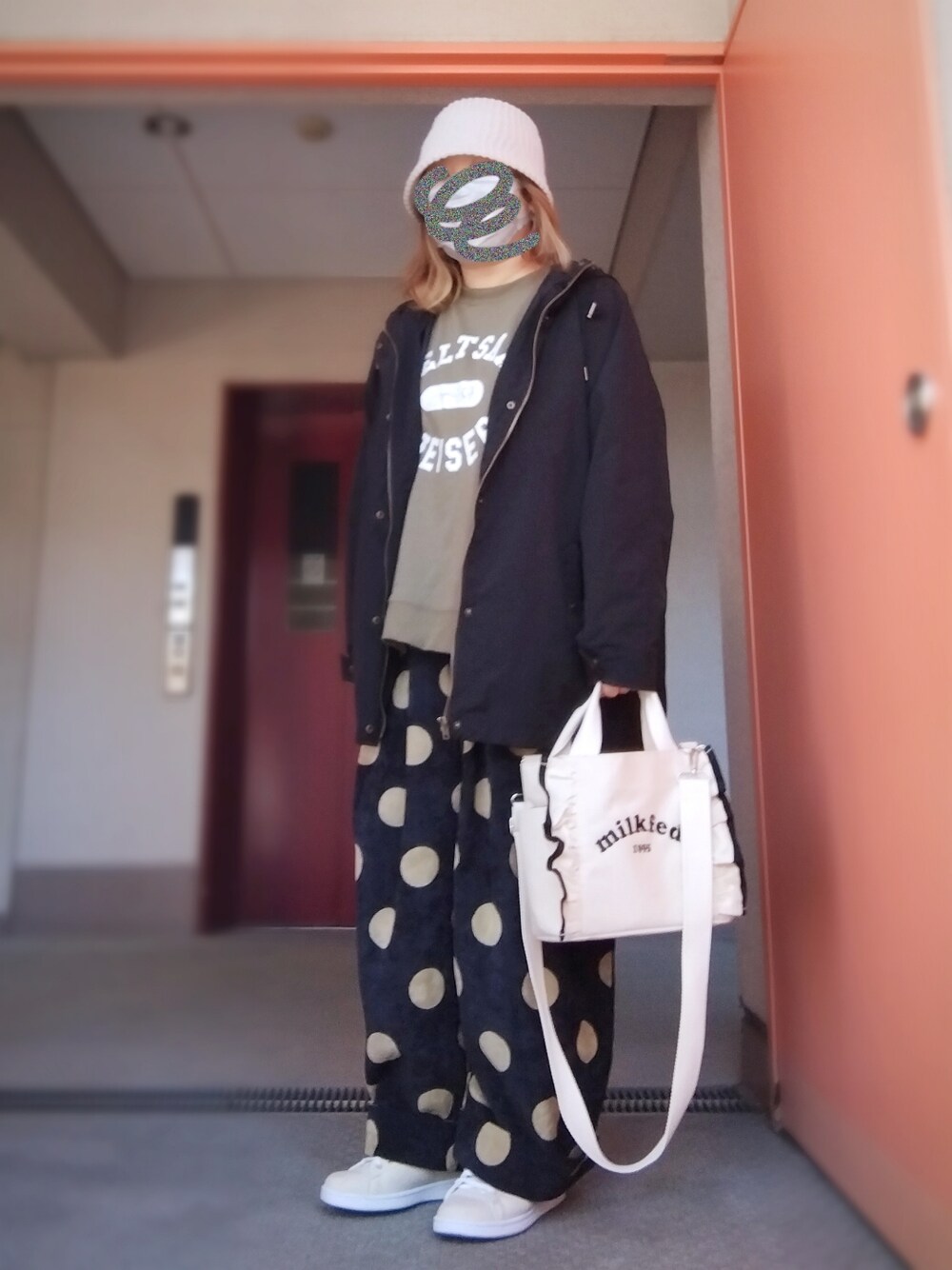 2月28日のコーデ 今日は最高気温18℃とのことで アウターは中綿ライナーを外し スウェットもパンツも薄手のにした 楽ちんコーデとなっております┏○ 以上|彡サッ