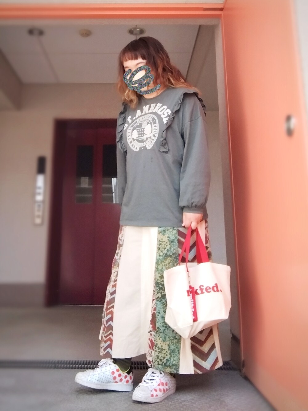 4月17日のコーデ MILKFED.の黒いトートの使い勝手が良すぎて 同じ形の種類色違いを1300円で購入 やはりシンプルが一番使いやすいし合わせやすい… 以上|彡サッ