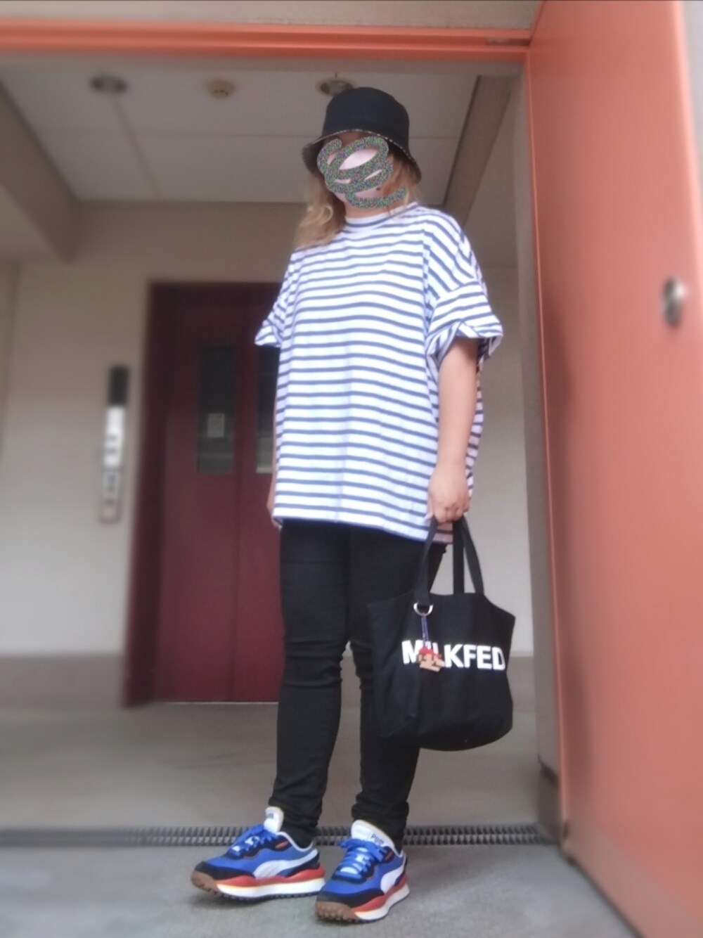 5月31日のコーデ 青紫ボーダー(^ν^) …以上|彡サッ