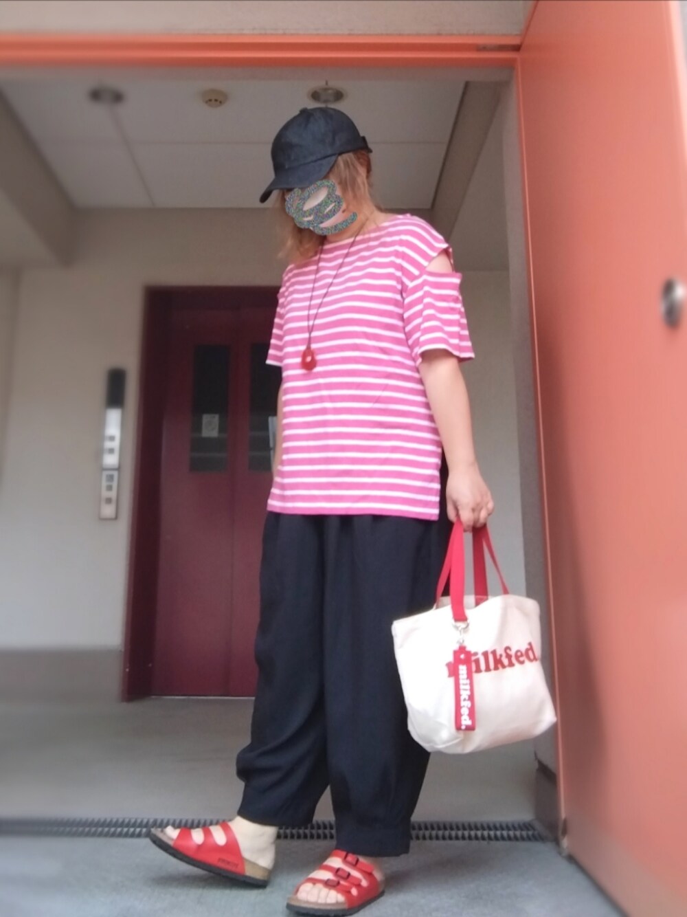 6月6日のコーデ GWにあみアウトレットで買った ボーダーTシャツ3枚のうちの 3枚目をようやく着れた!1000円でした! 肩のところ切れてるから涼しい! ワクチン打つのにも良さそう←? 小物に赤を散らしてみました(^ν^) 以上|彡サッ