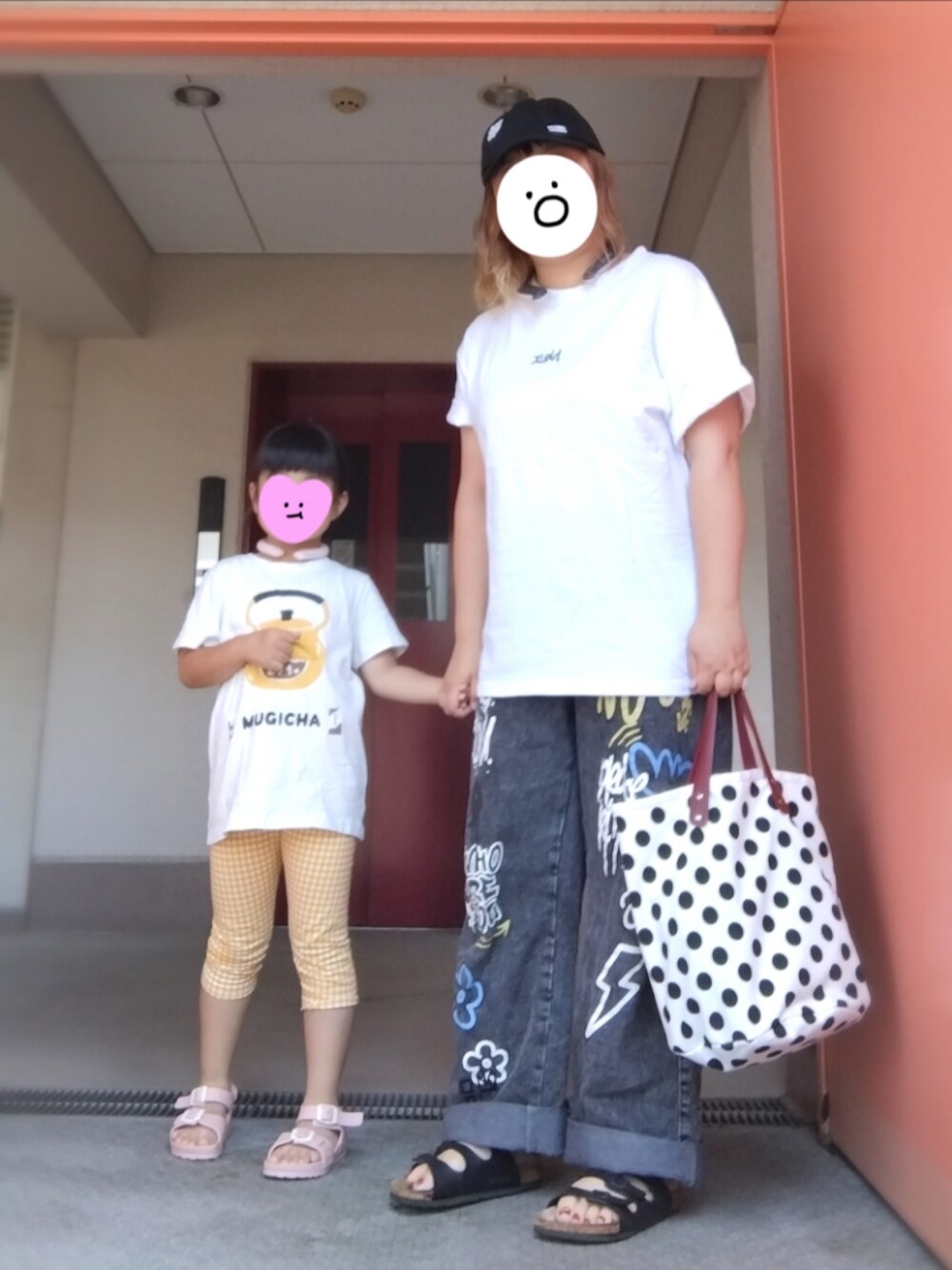 夏休み初日のおやこーデ 近所の某回転寿司へ🍣 「みんなの白Tフェス」とやらに参加👕 白Tは汚れたら目立つからあまり着ませんが あると便利ではある… いろんな服に合わせやすいし。 母はSHEIN様々コーデ 娘はTシャツのやかんとパンツが黄色で、 アイスリングとサンダルがピンクで うまいことコーデされてるな(超偶然← 以上|彡サッ
