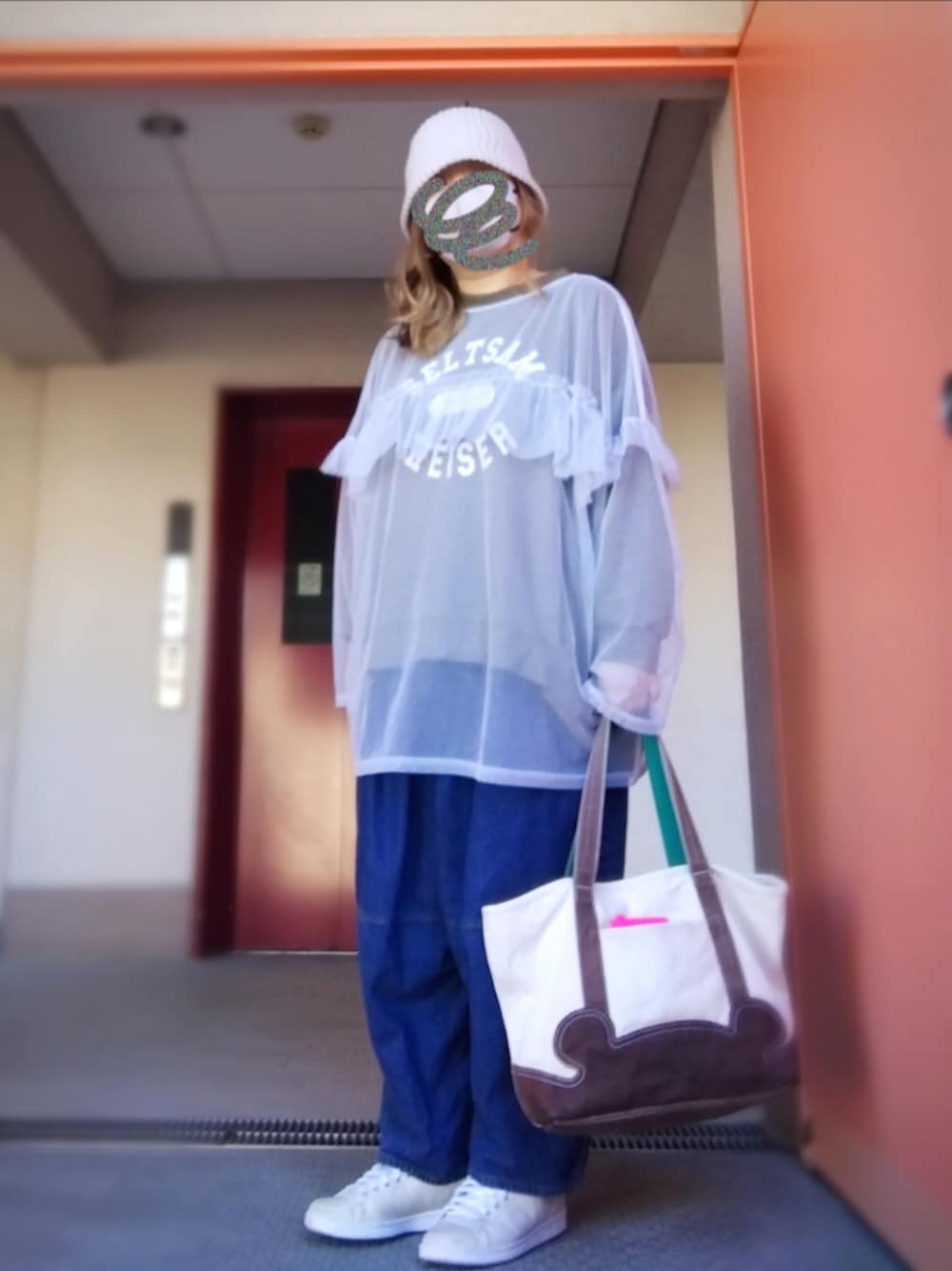 電車で数駅のところに買い物に行ってきた 11月22日のコーデ 今日は最高気温高めだったので 薄手スウェットにチュールT重ね(^ν^) 明日明後日はさらに暖かいらしい… 着るものに悩む日が続くな💧 以上|彡サッ