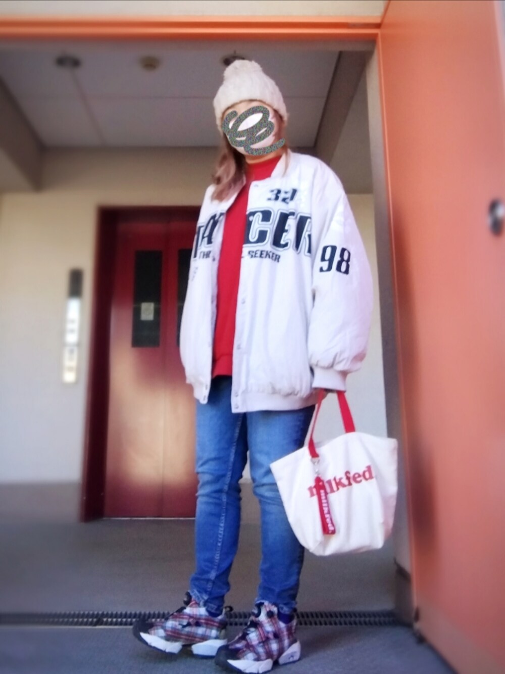 1月22日のコーデ 娘が赤いスウェットで学校行ったので 私も赤を着ました(゚ω゚) あとは適当です← 以上|彡サッ
