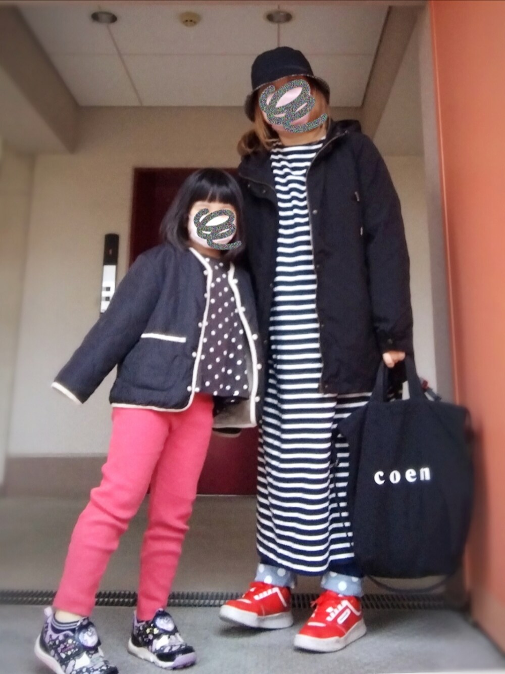 寒さがやや戻った 昨日4月5日のおやこーデ 毎日何を着たらいいか悩む季節ですね… 以上|彡サッ
