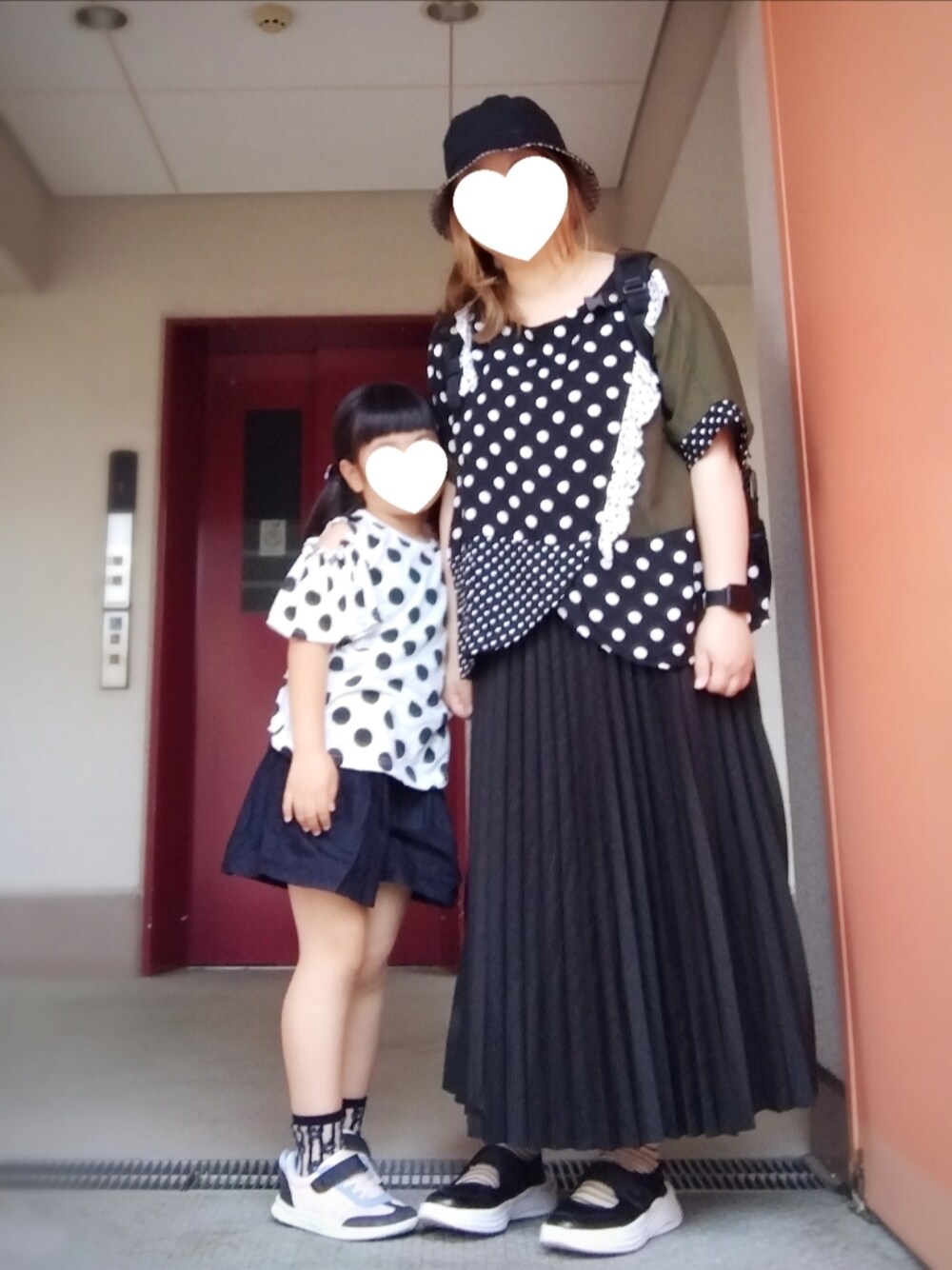 家族で近所のショッピングモールへ行ってきた 昨日5月19日のおやこーデ ドット×黒ボトムス×シースルーソックス親子 娘Tは西松屋でキュロットはGU …以上|彡サッ