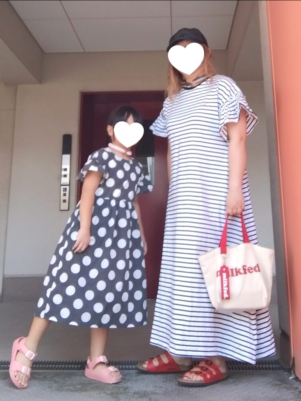 昨日8月19日のコーデです 親子とも袖がヒラヒラしたワンピ👗 母のワンピは日曜にセールで買いました✨️ 以上|彡サッ