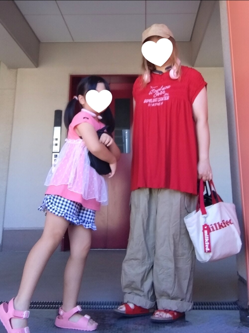 親子とも日曜に買った新アイテムを身につけて😄 娘のTシャツは半額でゲット! 母トップスは前から気になっていたやつで やっと試着できて、白と悩んで赤を購入 汗じみ防止ではないので気をつけます← 以上|彡サッ