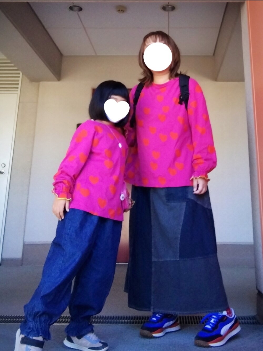 昨日11月4日のおやこーデです 今年の春に着るつもりでセールで買ってあった おそろトップス 娘のサイズが思いのほか大きくて… 秋になってようやく着れました\(^o^)/ 色柄違いも持ってるのでまたそのうち… 2枚目写真、少し上から撮った上 太めパンツのせいでしょうか… 娘がすごく小さく見える🤣 逆に1枚目は下から撮ってるから大きく見えます 確かに小3にしては小さくて、幼稚園からずっと 背の順1番前をキープ中ですが 一応118cmぐらいありますのよ… 以上|彡サッ