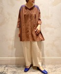 naturo(BEARDSLEY)のシャツ/ブラウス「ハンドスモック刺繍ブラウス」を使ったコーディネート