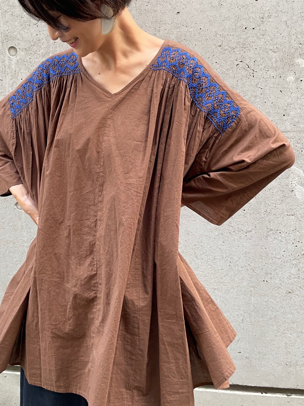 - ストッキング刺繍がポイントのブラウス😌 ブラウンにブルーってところがおしゃれですね。