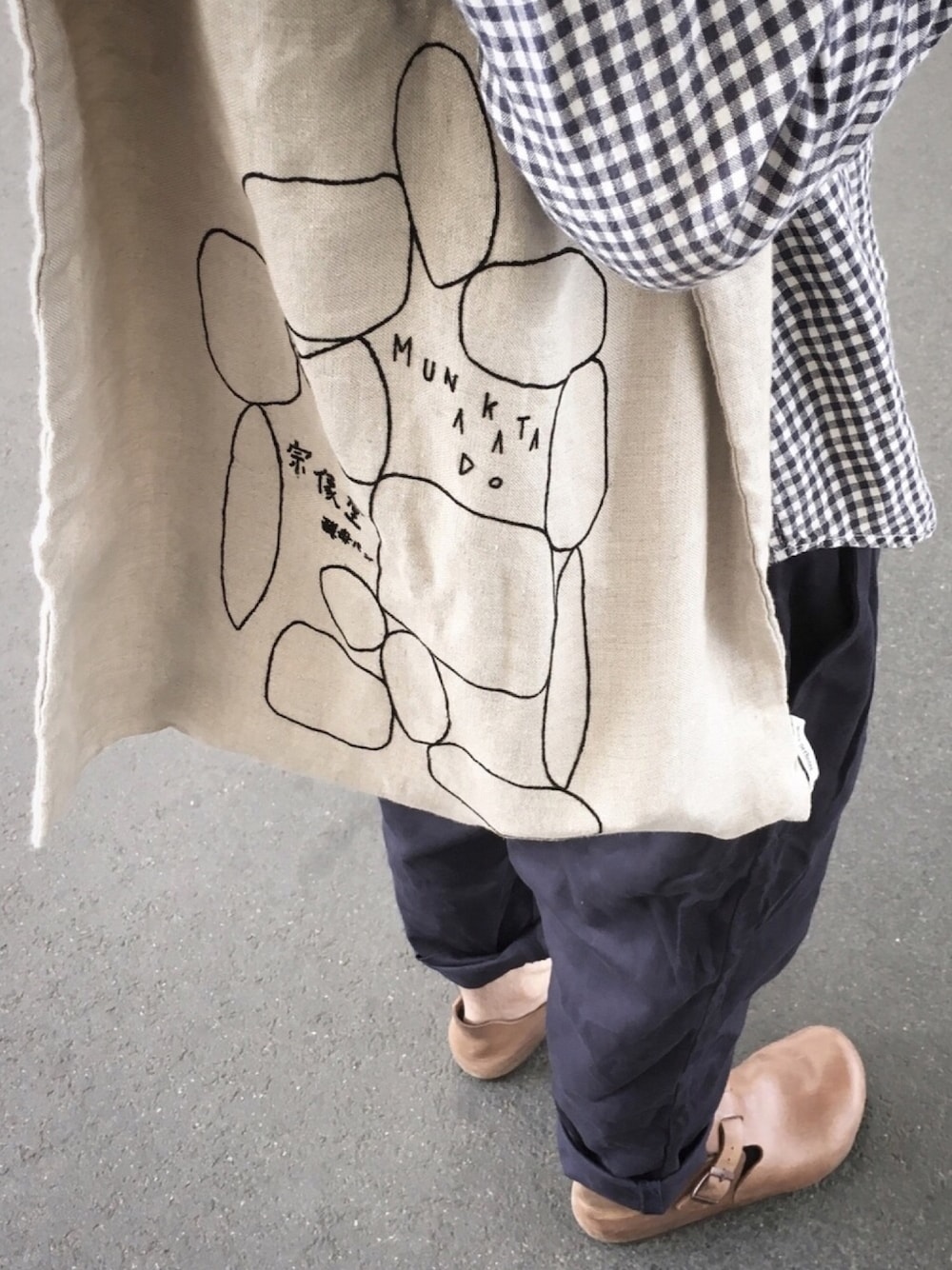 バッグは沖縄のパン屋さんのやつ