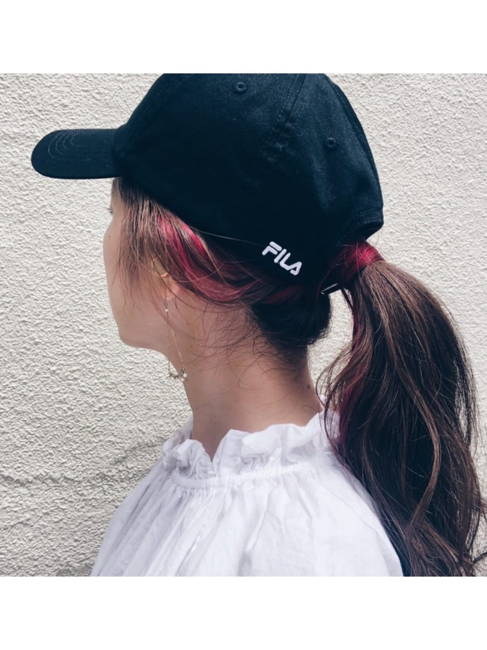 nayumiのキャップ「【FILA】FRONT TAPE LOW CAP / 【フィラ】フロント テープ ロウキャップ」を使ったコーディネート