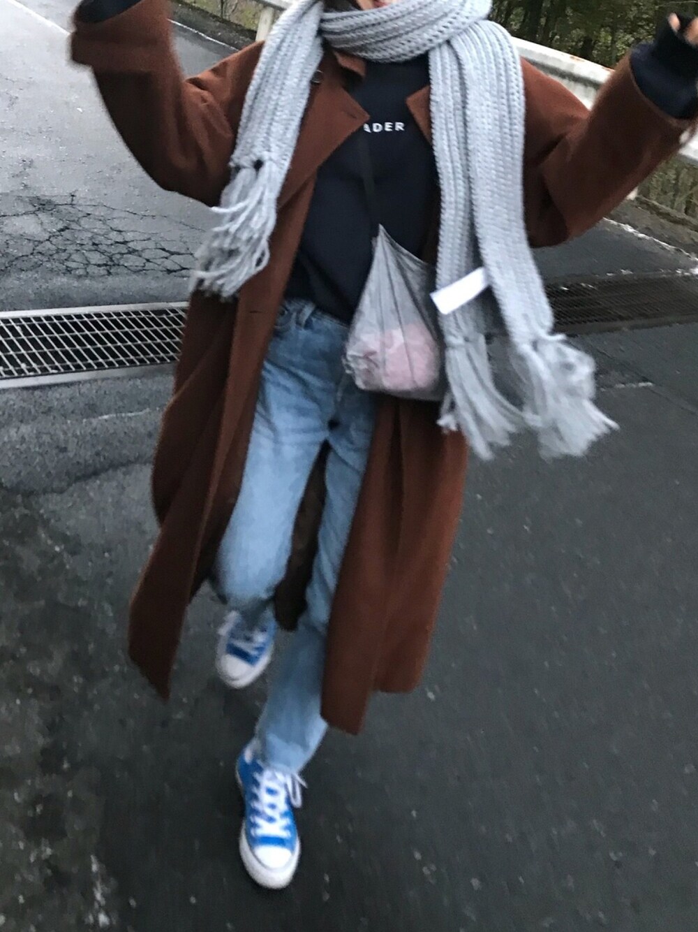 青いコンバースは韓国で購入 アウターは古着🤤