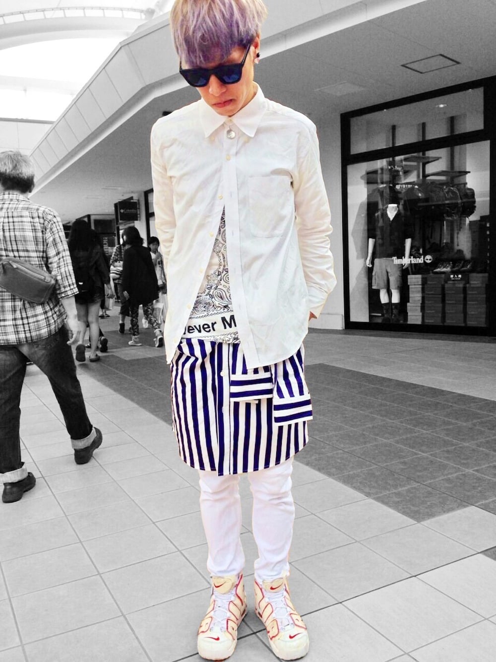 おはようございます!! 寒くて布団から出れないNOBUです❄ 寒いよ京都。。。。 さぁ今回は過去のコーデです!! 僕のページの最初の方まで見てもらえたら載ってるコーデなんですが、もっと色んな人にこのコーデ見てもらえたらと思って載せちゃいました(*゚O゚*) もう知ってた人はすいません。。。。もっかい見てやって下さい。。。(笑) オールホワイトコーデです! 腰巻きにストライプシャツ。これが初めてスカート巻きしたやつですねー\( •̀ω•́ )/うんうん。 髪は銀髪で、毛先紫がかった感じでわちゃわちゃしてました(*^^)v またこんな感じで染めたいなー。。。 あ!これは昨日の話。。 STARWARSの1番くじ!出てますよー!! 皆さん是非引いて下さいねーーーーー(*´罒`*)(笑) でわでわ。 あんにょーーーーーん(◍˃̶ᗜ˂̶◍)ノ"