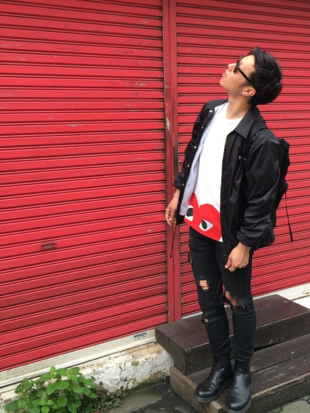 おはようございます☀️ NOBUです!! 今日も更新します!! 今回も撮りためですが。。。(笑) 黒と白でモードな感じにしてみました! プレイのTシャツにアンカバのコーチジャケット羽織ってます! 下はZARAのスキニーにマーチンです👞 この写真上見てますが、 実はギャルソンカフェというカフェの前で撮ってます( ᐛ )و ギャルソンの服着てギャルソンカフェの前で撮りました( ᐛ )و 良かったら小窓も見てください(°´ ˘ `°)/ でわでわ。 あんにょーーーーーーん🍔