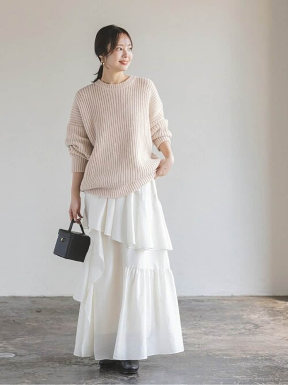 【ラメ畦編みプルオーバー】 ざっくり感が可愛い冬に着たいニット。 ラメがさり気なく入っているので、派手にならず◎ 明るめのベージュにホワイトのティアードスカートを合わせれば、王道のフェミニンコーデが完成。 ○身長:155cm ○年齢:20代 ○体型:細身(もも周りが気になる) ○普段サイズ:34 公式Instagramも 是非ご覧ください!! →@nb_aruga