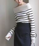 ★11/30より24SSご予約スタート! 【オフショルニット】 フェミニニティをグッと高めてくれるオフショルニット。 ボーダーをチョイスするだけでカジュアルダウンが叶うので、肌見せもヘルシーな印象に。 もっちりとした肌当たり抜群の着心地なのも嬉しい。 【ペーパーバッグタックワイドパンツ】 まろやかなレッドがスタイリングに鮮度を与えてくれるワイドパンツ。 タックが贅沢に入っており、スカート見えするのでフェミニン派さんにもおすすめしたい1本。 ボーダー×カラーパンツで洒落たっぷりコーデの完成! ※バッグ詳細 商品名:【micadellavallue】 mervato 商品番号:23091250001010 価格:¥26,000+税 ECにて12/15より予約販売スタート ○身長:155cm ○年齢:20代 ○体型:細身(もも周りが気になる) ○普段サイズ:34 公式Instagramも 是非ご覧ください!! →@nb_aruga