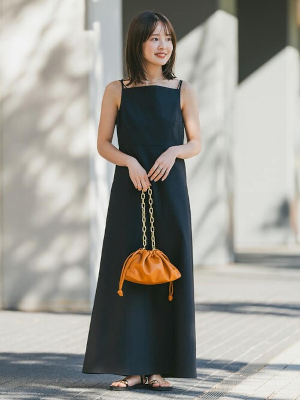 【麻ストレッチキャミソールワンピース】 昨年ご好評頂いた麻素材のワンピースが、キャミワンピになって登場! 身体のラインに程よく沿って落ちるシルエットが、大人らしさと上品さを演出してくれます。 ブラックのワンピに鮮やかなオレンジを差して、華やかに仕上げて。 ※バッグ詳細 商品名:【JULES KAE】BREA 商品番号:24092250003810 価格:¥15,000+税 3月入荷予定 ○身長:155cm ○年齢:20代 ○体型:細身(もも周りが気になる) ○普段サイズ:34 公式Instagramも 是非ご覧ください