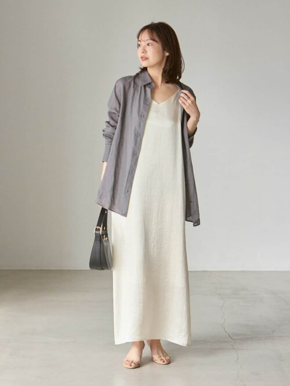 【ラミーレギュラーフィットシャツ】 ナチュラルなラミー素材×きれいめなサテン地の異素材の掛け合わせ。 どちらも軽やかな素材感なので違和感なく、モダンな印象に決まります。 ラミーシャツは春夏の日除け対策にさらっと羽織るのにもお勧め◎ 羽織としての活躍も大きいお勧めの逸品です。 ○身長:155cm ○年齢:20代 ○体型:細身(もも周りが気になる) ○普段サイズ:34 公式Instagramも是非ご覧ください!! →@nb_aruga