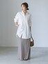 【My Policy Shirt】バックボタンレギュラーオーバーシャツ オーバーサイズのシャツを足元まで隠れるロングスカートと合わせるロング&リーンなコーディネート。 ルーズでありながらキレイ見えするのはNOBLEのアイテムならではの、抜け感や女性らしいディテールデザインゆえ。 腕まくりや襟元を抜いて少しだけ肌を見せて◎ ※スカートは7/18より追加ご予約開始予定 キュプラサテンナローAラインスカート 商品番号:24060240507130 ○身長:155cm ○年齢:20代 ○体型:細身(もも周りが気になる) ○普段サイズ:34 公式Instagramも是非ご覧ください!! →@nb_aruga