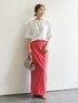フェイクスウェードサイドスリットタイトスカート 目を惹く赤をさし色にした大人のカラーコーデ。 女性らしいスリットとタイトなシルエットのスカートに敢えてラフな大きめTシャツをオン。 スカートにインパクトがあるので、ドレッシーに決め込むよりもカジュアルさをMIXするのが今の気分。 ○身長:155cm ○年齢:20代 ○体型:細身(もも周りが気になる) ○普段サイズ:34 公式Instagramも是非ご覧ください!! →@nb_aruga