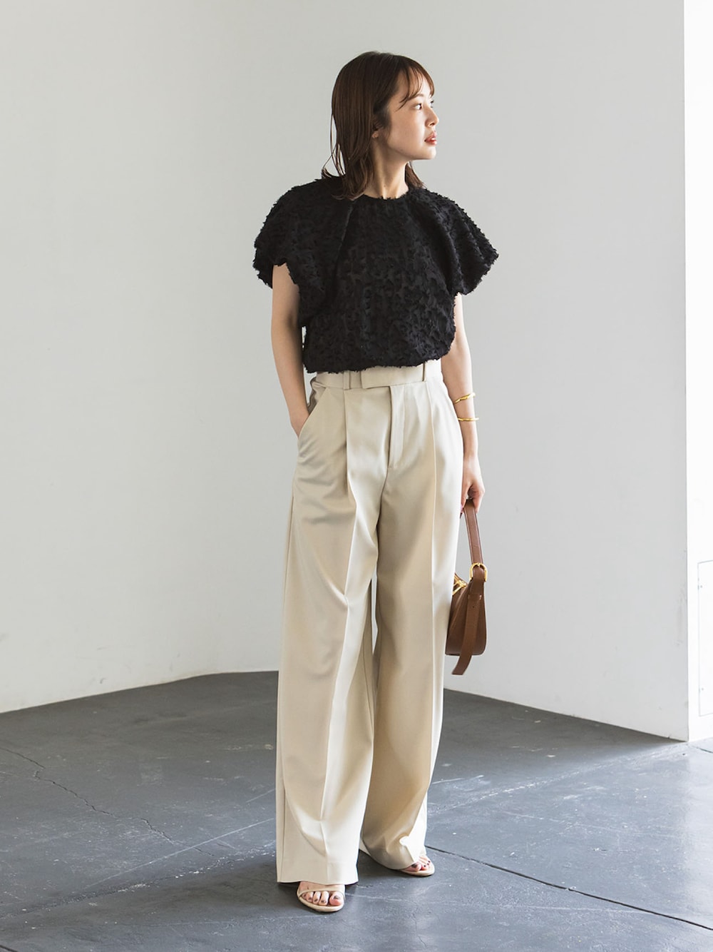 エステルツイルストレッチスラックスパンツ 定番ボトムスとして欠かすことのできないエステルツイルパンツに新色登場! 柔らかなベージュカラーはまさにこんな色待ってた!というような絶妙な色味。 ブラックのトップスを合わせても程よく抜け感を加えてくれます◎ ○身長:155cm ○年齢:20代 ○体型:細身(もも周りが気になる) ○普段サイズ:34 公式Instagramも是非ご覧ください!! →@nb_aruga
