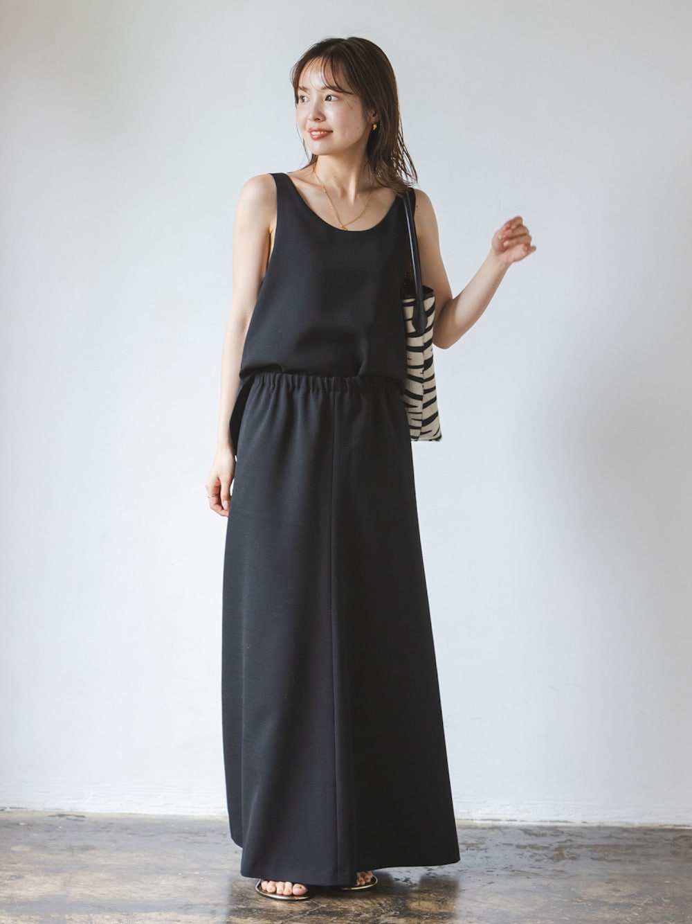 minani.a(NOBLE 本社)のワンピース「ウールMIXツイルレイヤードワンピース」を使ったコーディネート